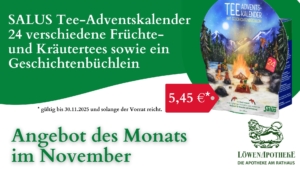 Lassen Sie sich durch die Vorweihnachtszeit begleiten von unserem SALUS Tee-Adventskalender mit verschiedenen Früchte- und Kräuterteemischungen. Bei uns für 5,45 €.